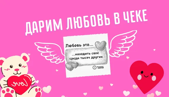 Получите чек с романтическим посланием "Любовь - это...".
